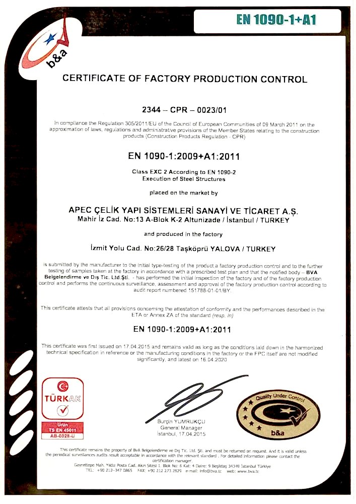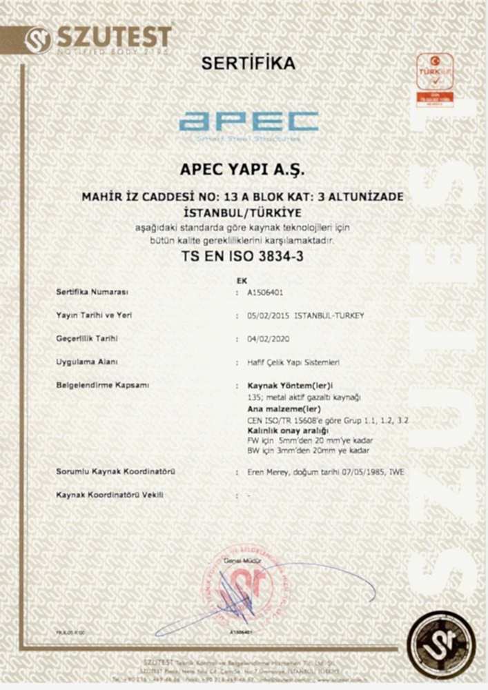 APEC Steel Structure Systems Industry and Trade Inc. was established in 2007 with the belief that it can provide innovative, contemporary, sustainable, and optimum solutions to seismic risks in Turkey and the disadvantages of conventional construction techniques by utilizing steel construction systems widely used in advanced countries around the world. At the Taşköprü Yalova Factory, advanced engineering steel construction products that make a difference are manufactured according to international standards. With 17,000 m² of open and 5,000 m² of closed area, the facilities have an annual production capacity of 2,000,000 m² of closed building area.